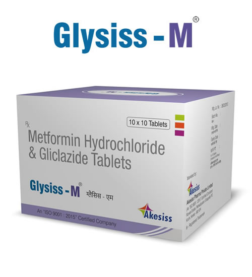 GLYSISS M contains Gliclazide and Metformin Hydrochloride .Gliclazide, chemically is 1-(3-azabicyclo {3.3.0} oct-3-yl)-3-p- tolylsulphonylurea. Metformin Hydrochloride is 1, 1-dimethyl biguanide hydrochloride. The two drugs in GLYSISS-M act complementary to each other. Gliclazide reduces blood glucose levels by correcting both defective insulin secretion and peripheral insulin resistance. This occurs by the closure of K+ channels in β-cells of the pancreas. Subsequently, Ca2+ channel opens leading to an increase in intracellular calcium and induction of insulin release. Gliclazide also increases the sensitivity of β -cells to glucose. Gliclazide restores peripheral insulin sensitivity such as decreasing hepatic glucose production and increasing glucose clearance. Gliclazide has anti-platelet adhesive activity and reduces the level of free radicals, thereby preventing vascular complications. Gliclazide has been reported to reduce plasma cholesterol and triglyceride levels after reported administration. The combination is quite useful in achieving satisfactory glycemic control and thus obviate the need for insulin in some patients. Metformin acts as an antihyperglycaemic agent by improving hepatic and peripheral tissue sensitivity to insulin, thus enhancing glucose uptake & utilization. It also appears to have a beneficial effect on serum lipid levels and on fibrinolytic activity. Metformin therapy is not associated with an increase in body weight. However, it normalizes weight in overweight patients.